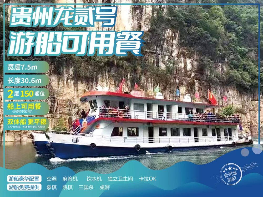 - 6、觀光船票+特色餐飲套餐: 10人內船上用餐 ,費用包含:10人內船上用餐+觀光船票,全程1.5小時。只有10點半或者12點半班次可以用餐,其他時間不能用餐。