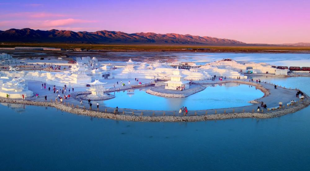 ▲ 【茶卡鹽湖|踏入天空之鏡的魔方世界】 當你赤腳踩進雪白鹽粒的瞬間,就化身為漂浮雲端的主角!這裡根本不是湖,而是上帝失手打翻的巨型眼影盤~建議下午四點入場,夕陽會將整片鹽湖染成蜜桃金色,穿上亮色長裙旋轉抓拍,隨時拍出《潛行凶間》級別的空間摺疊大片!