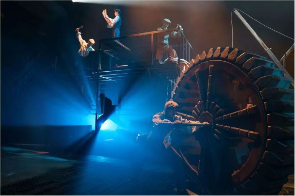 - 巧妙地利用輪機車間的空間結構,結合燈光、音效、多媒體等現代舞台技術,營造出逼真的場景