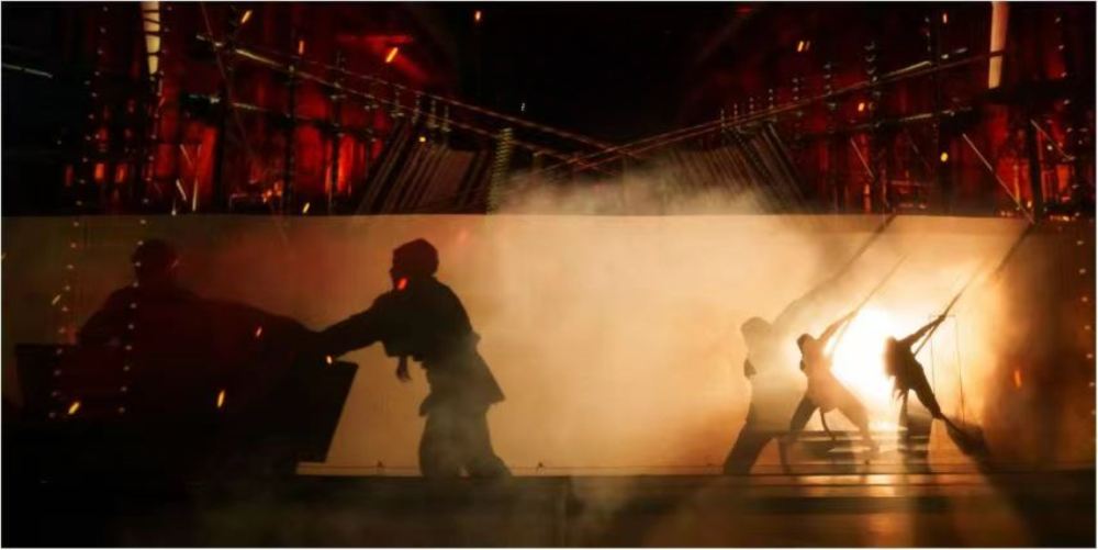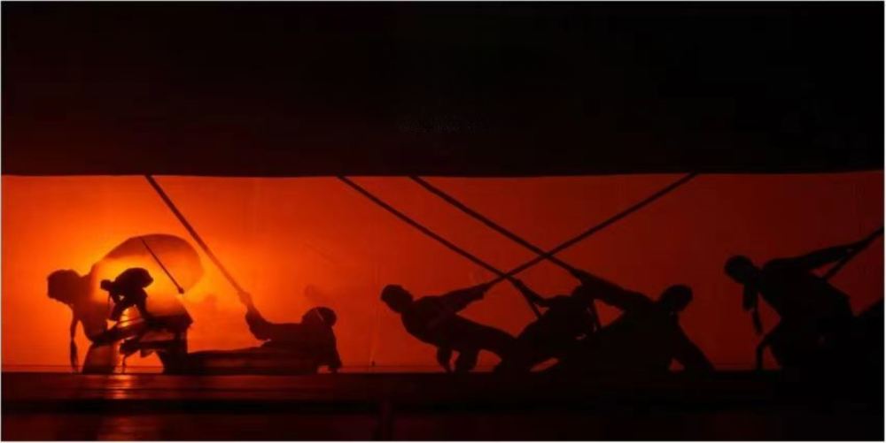 - 煙霧與光影塑造剪影,演員動作剛勁有力,模擬船政建設中的勞動與拼搏場景,凸顯先輩奮進精神,強化歷史厚重感。