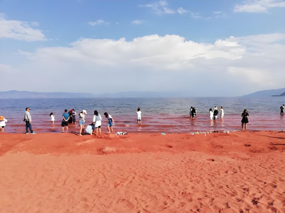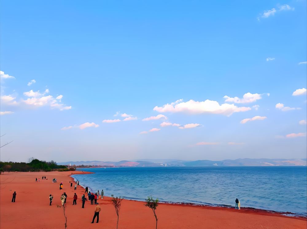 隨後前往撫仙湖西岸的紅沙灘,這片由特殊礦物質沉積形成的粉紅色沙灘,與澄澈如藍寶石的湖水交織出如夢似幻的視覺效果,沙質細膩柔軟,光腳行走其上別具一番趣味。午後時分,遊客將搭乘環湖遊船,在波光粼粼的湖面上悠然前行,沿途可見水天相接的壯闊景致,偶有水鳥掠過水面,為這幅天然山水畫增添幾分靈動氣息。