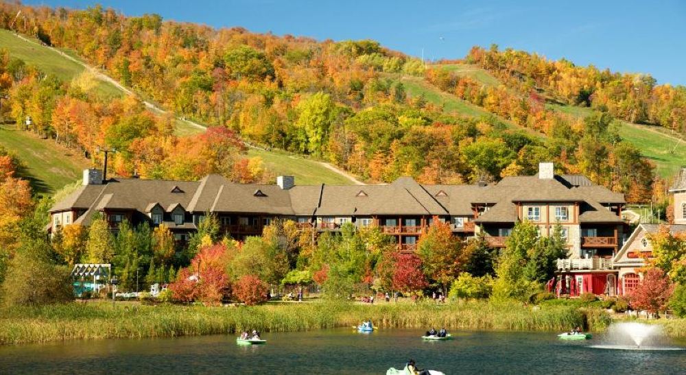 ▲ 加拿大藍山度假村(Blue Mountain Resort)坐落於安大略省尼亞加拉斷崖與喬治亞灣之間,佔地700英畝,距多倫多約2小時車程。村內40+酒店餐飲、42條雪道、15條纜車,四季可滑雪、高爾夫、山地車、高空飛索,年接待200萬遊客,是加東大型綜合度假樂園