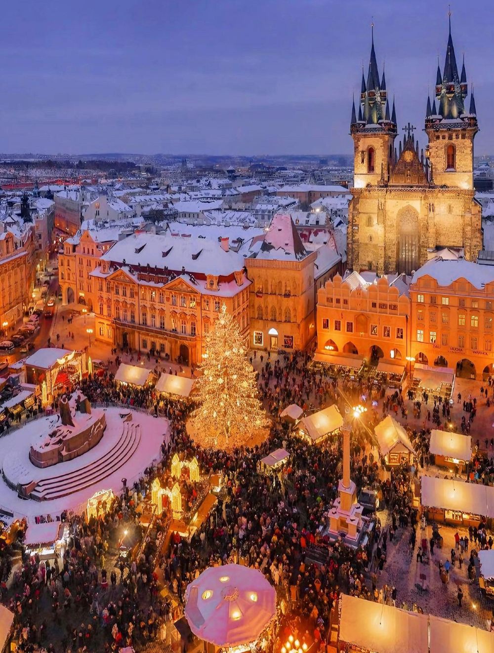 這座法國古城是聖誕傳統的起點。11個主題市集連成光之迷宮,克萊伯廣場的巨型聖誕樹莊嚴動人,大教堂下燈火與古建築交織。街頭表演、熱紅酒、火焰薄餅、薑餅人、阿爾薩斯特色食物,是從視覺到味覺的純正浪漫。走在「小法蘭西」區木筋屋間,彷彿穿進老式聖誕明信片。