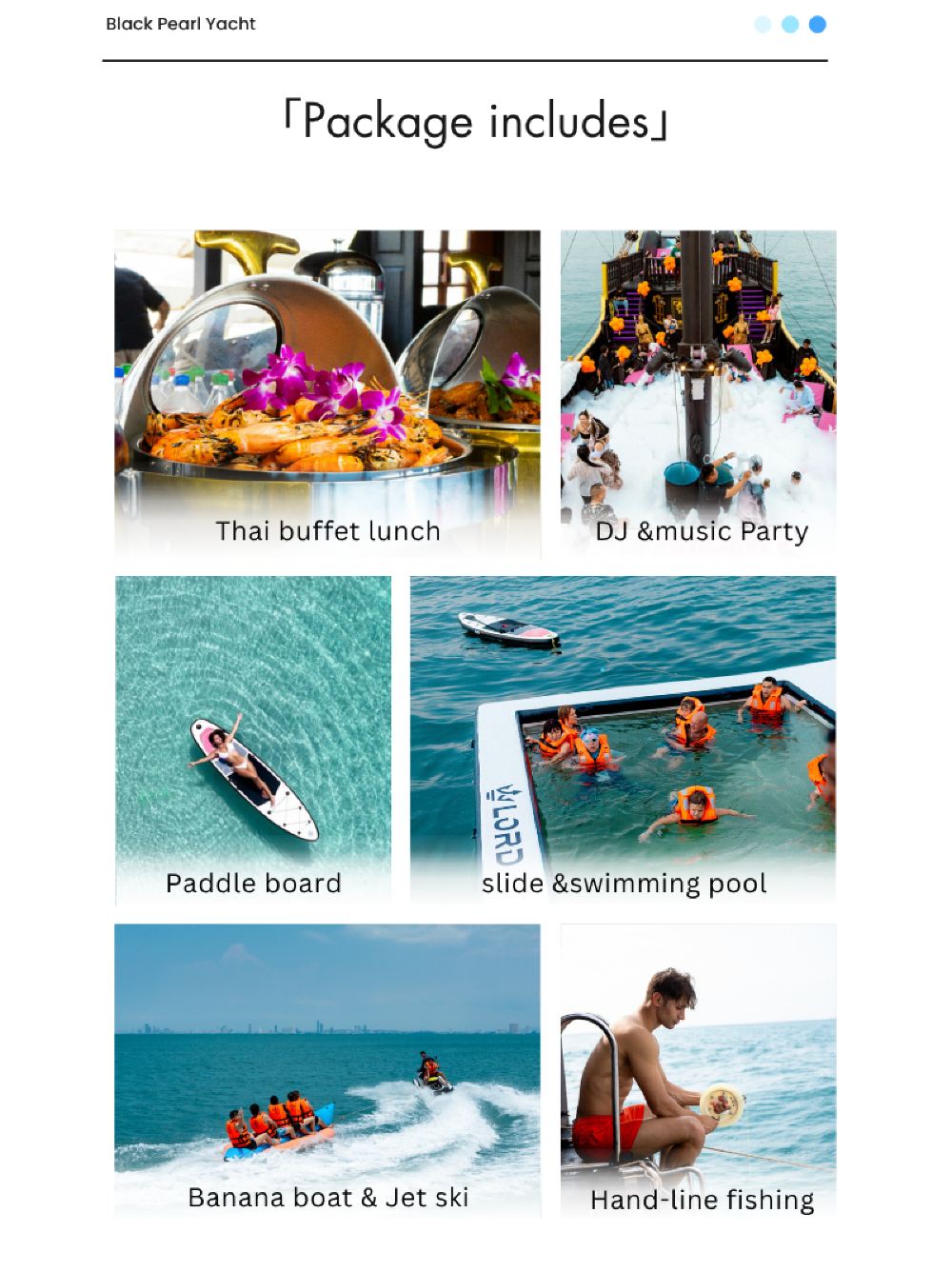 15:00抵達閣蘭島享受各種娛樂活動設施(自選登島或在船上玩水上項目),提供滑梯和泳池玩樂。並開始隨DJ音樂起舞有泡泡浴派對;派對期間將提供1小時的蘭姆酒無限暢飲。