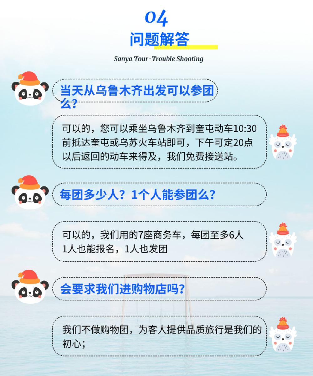 - 可接當日烏魯木齊10:30左右抵達奎屯/烏蘇的火車,送20:00左右返回的火車。