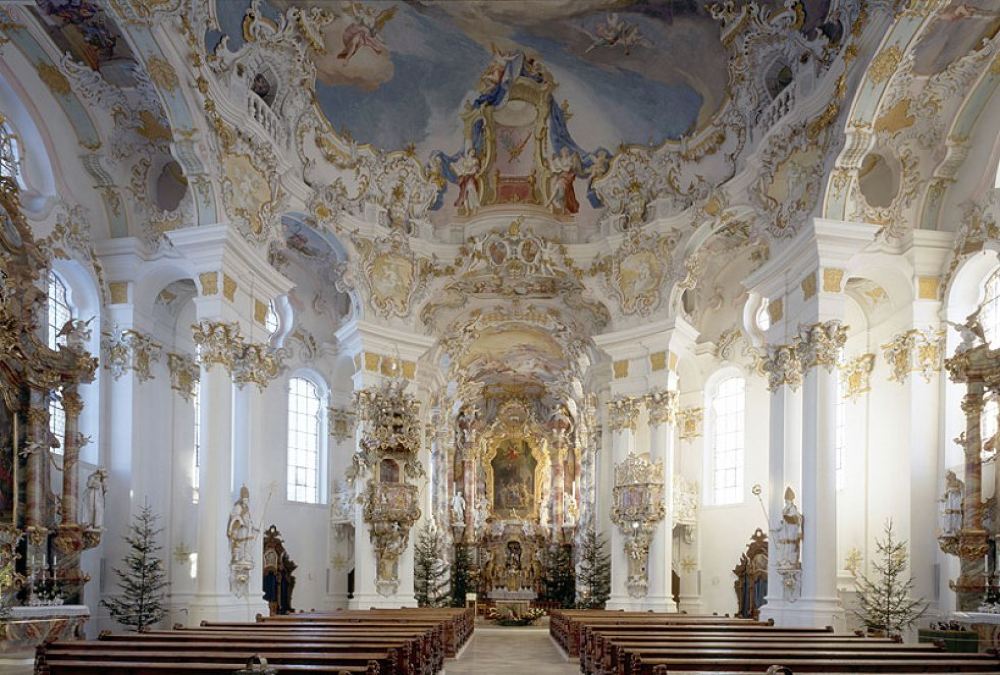 ▲ 建築哲思:齊默爾曼兄弟以橢圓形制與韋索布倫學派灰泥技藝,將「超自然可視化」,讓穹頂壁畫與鎏金裝飾共築懺悔與救贖的神聖空間。