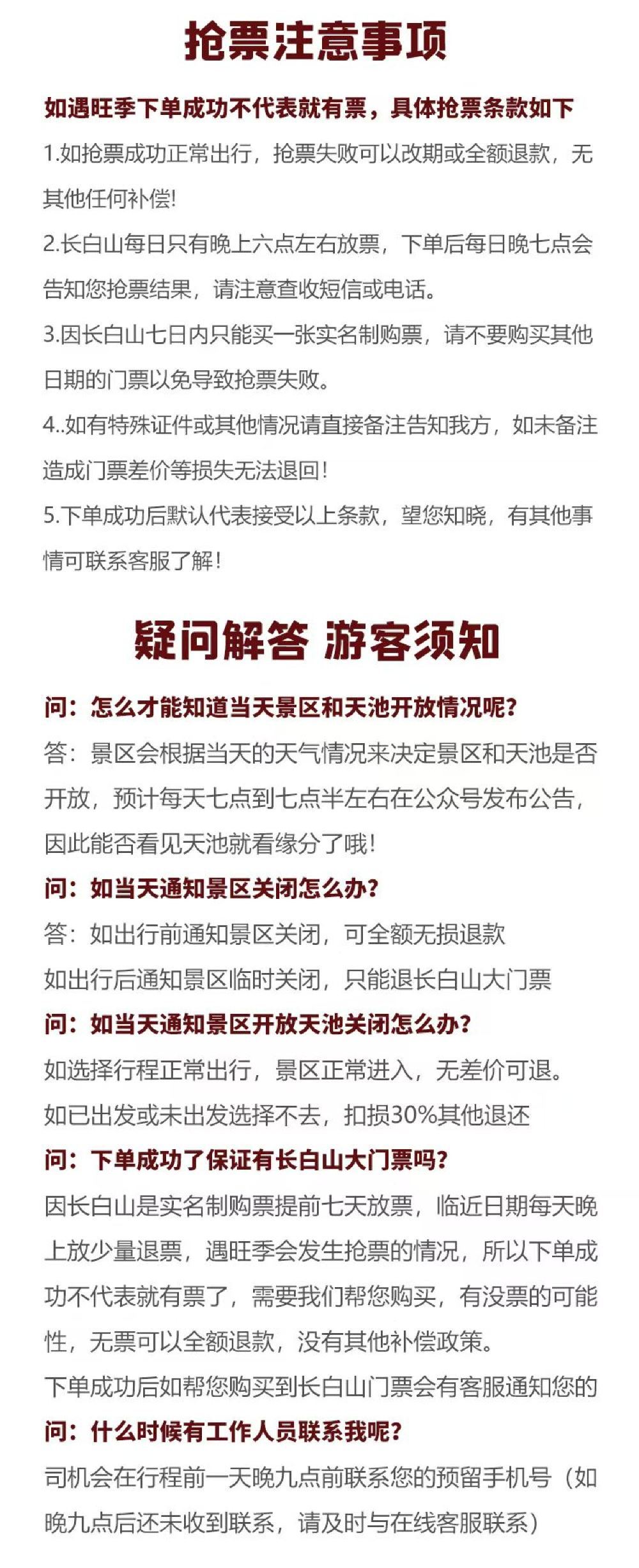 長白山景區是否開放以當日早上七點公告為準,無法提前預知,如關閉取消行程,具體退款細則以客戶服務支援通知為準。景點活動