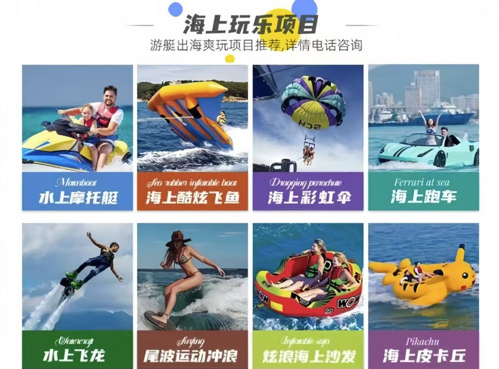 •遊艇娛樂項目請提前一天告知客戶服務支援準備哦~