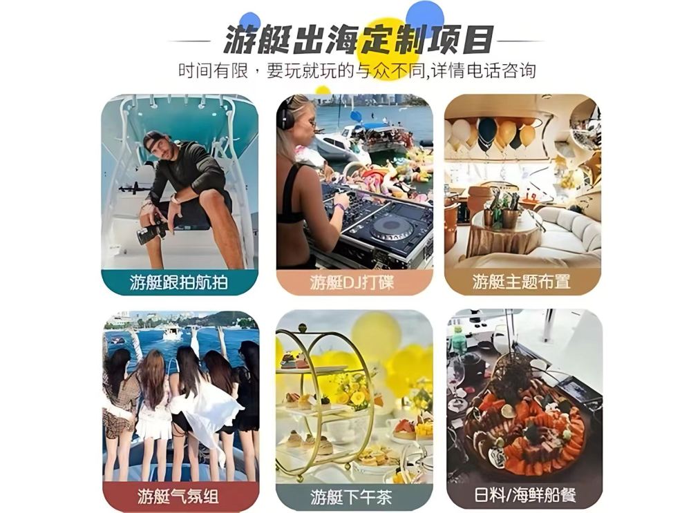 - 2、定制套餐需另外付費,可以先確定遊艇檔期,定制套餐需在發船前3天以上提前確認,以便給遊艇小夥伴們留足時間幫您準備道具