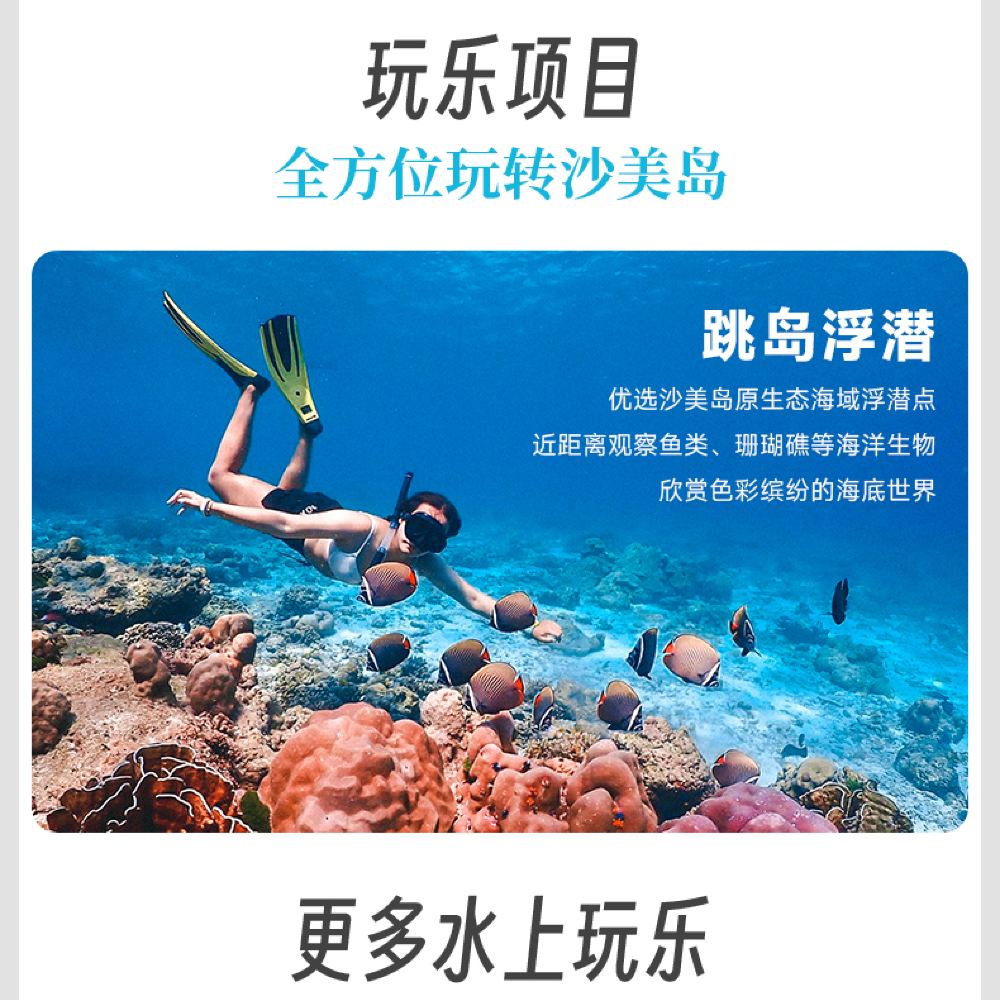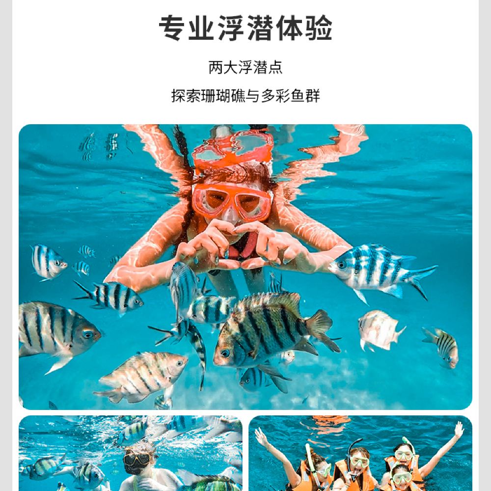 - 登島浮潛,踩沙拍照,樂趣無窮;