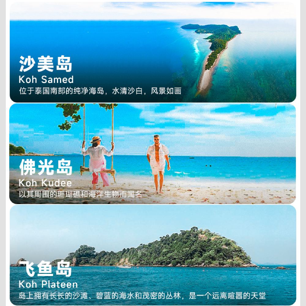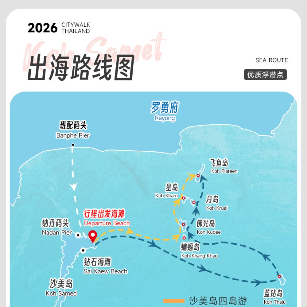 【芭堤雅出發客人】到達班配碼頭,乘坐快艇去沙美島,和【沙美島客人】集合換船,前往沙美島附近海域浮潛景點活動