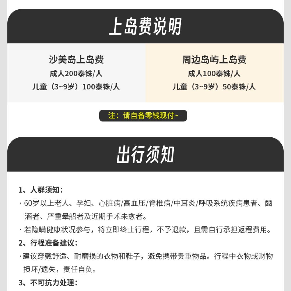 上島費分2次收取,共:成人300泰銖/人,兒童150泰銖/人