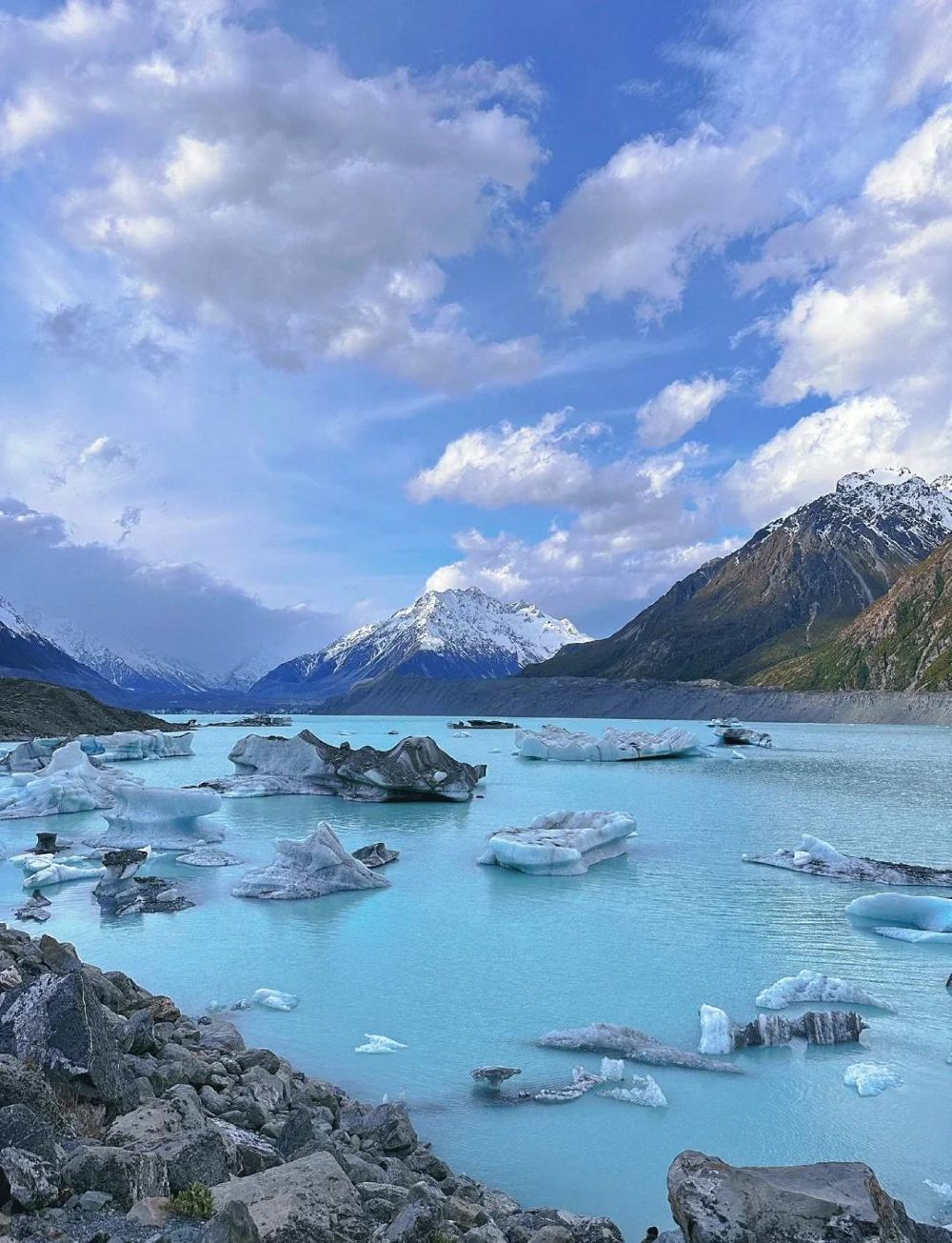 冰川融水形成的湖泊,冰藍變深藍的牛奶藍湖,倒映著庫克山的壯麗景象。景點活動