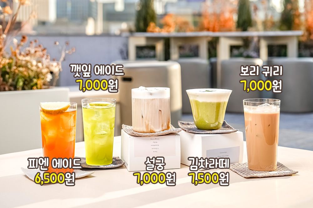 - 以獨特餐牌聞名,包括造型逼真的水果慕斯蛋糕,以及靈感源自韓國文化的招牌飲品,例如外觀酷似白雪覆蓋景福宮的咖啡。