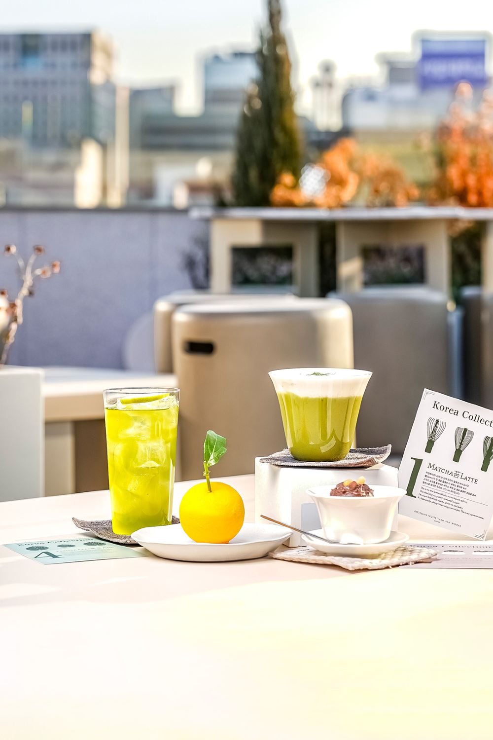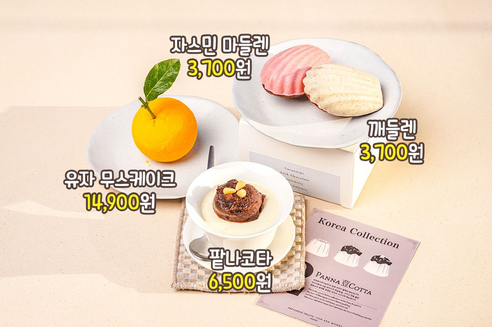 這裡的甜點視覺效果令人驚艷。柚子慕斯蛋糕逼真得猶如真正的柚子果實。韓國系列的另一款招牌甜點是紅豆奶凍,頂部鋪滿甜紅豆和松子,風格類似韓式刨冰。口感濃郁、帶有堅果香氣,味道平衡得恰到好處。