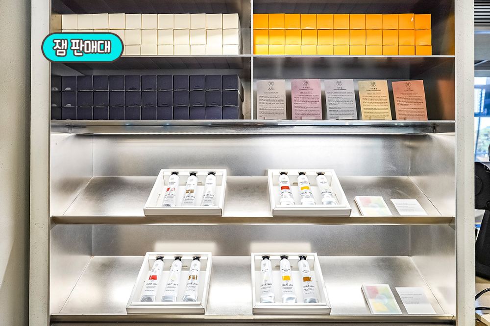 在四樓收銀處附近,你會找到茶包、杯墊,以及PNA SEOCHON專享的自家製果醬。這些果醬採用牛奶、草莓、海藻、蘋果甚至咖啡豆等原料製成,獨特程度與其聽起來一樣。包裝設計精美,非常適合作為禮物。