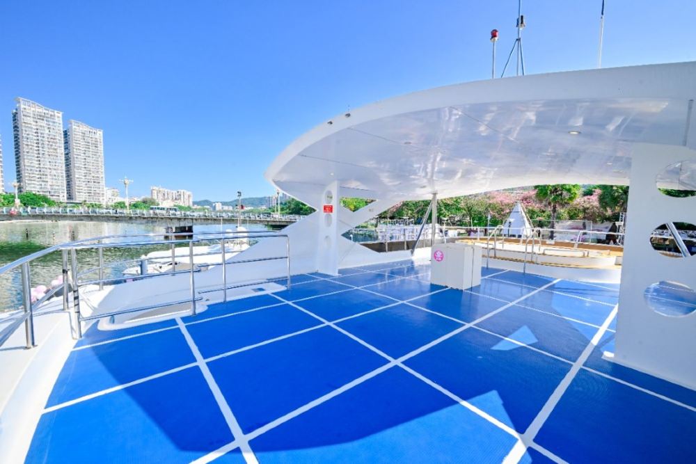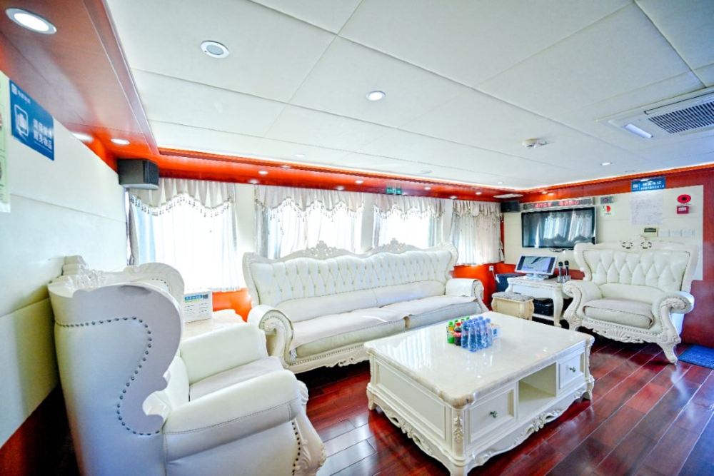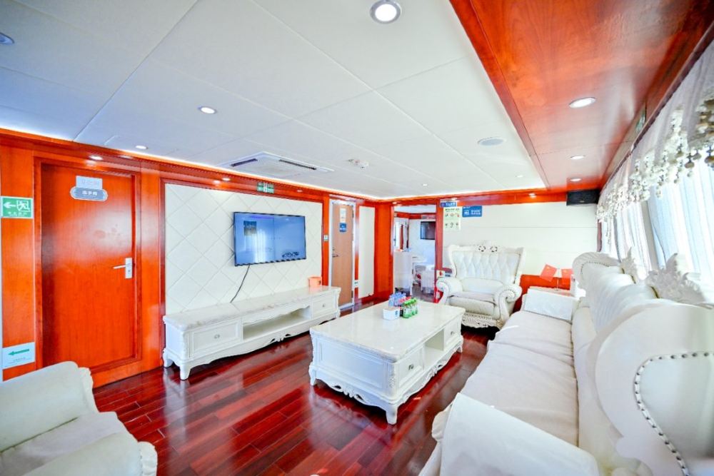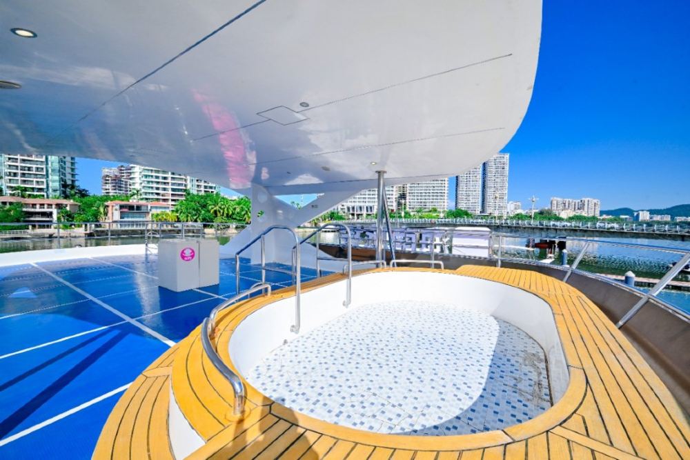 艙內配備齊全舒適設施,無論係朋友組團高歌、家庭玩水嬉戲,定係派對狂歡,都能喺呢個空間裏面,將快樂推到極致 —— 海上歡聚,就應該咁盡興!頂級豪華大遊艇,歡唱KTV360°觀海飛橋,適合家人朋友聚會、公司團隊建設、海上DJ派對。