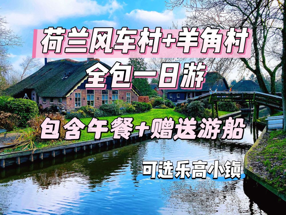 羊角村遊船一小時。沉浸式感受荷蘭「綠色威尼斯」。如您想升級自駕遊船,請在前往羊角村之前提前與導遊諮詢景點活動