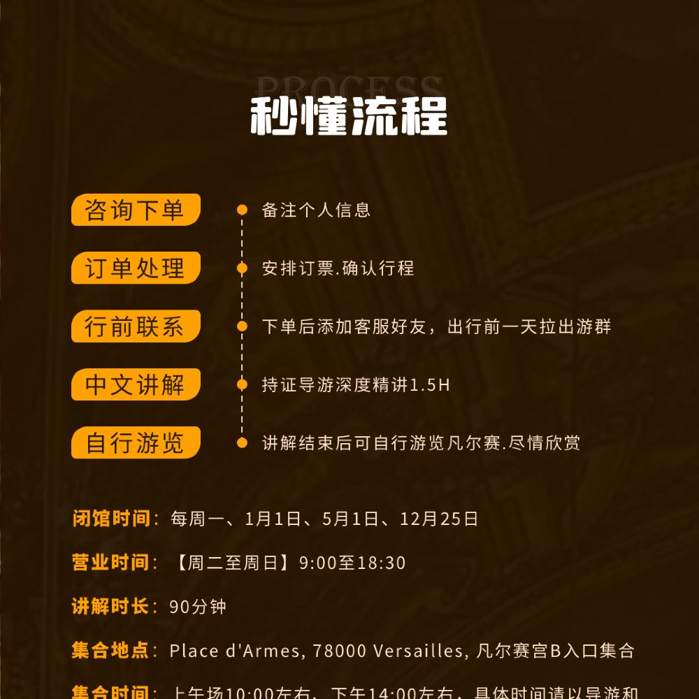 特別注意!!! 因凡爾賽宮票務供應問題,集合時間可能存在變動,最終以實際出票時間為準,下單前可諮詢客戶服務支援確認時段可用性景點活動