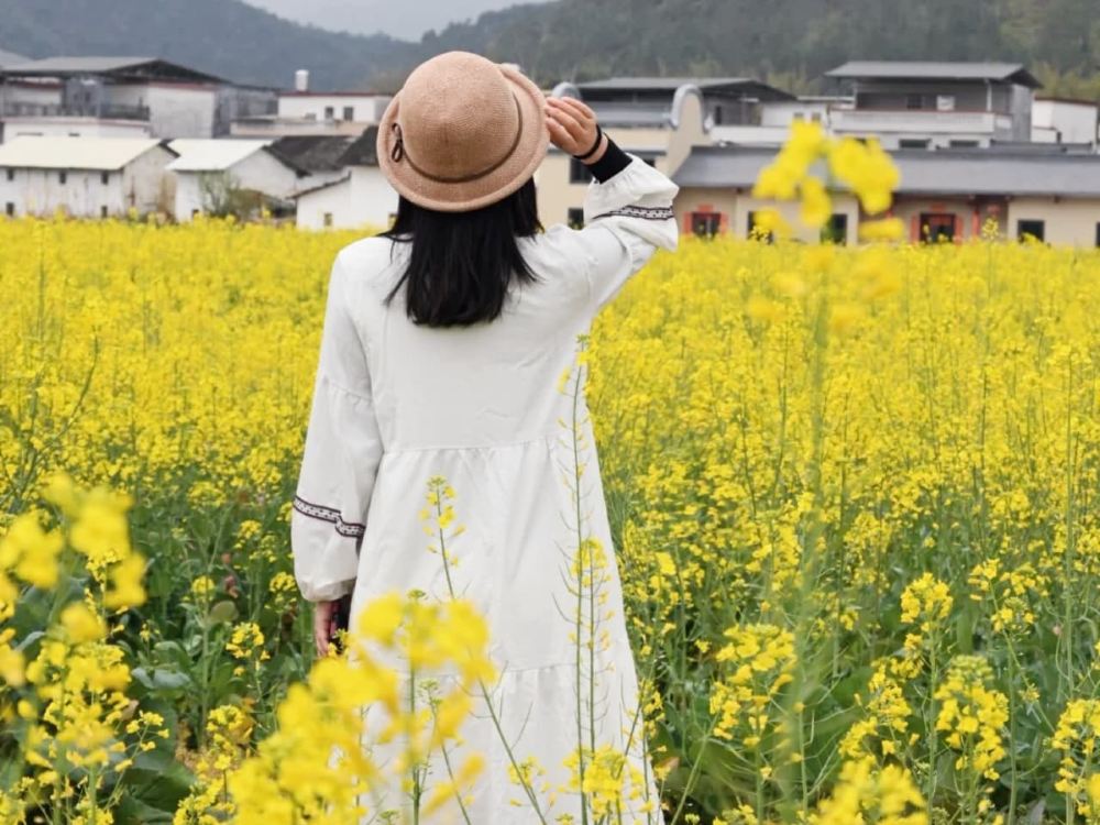 - 秀田古樹油菜花海,詩意田園春日金色浪漫。古村老屋依偎花田,滿是溫柔的春日田園氣息