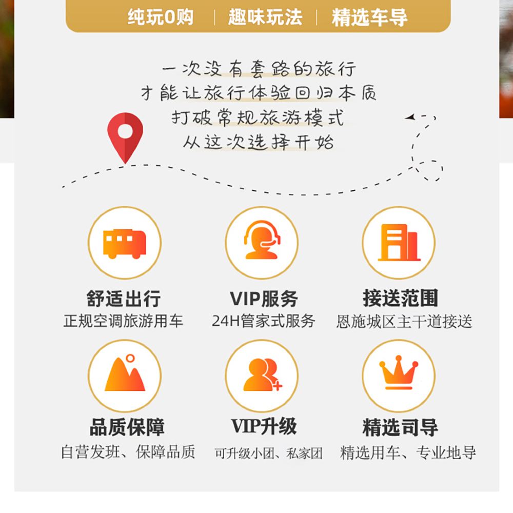2、行程可於恩施市區或梭布埡景區附近接送