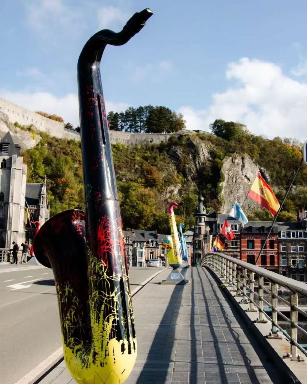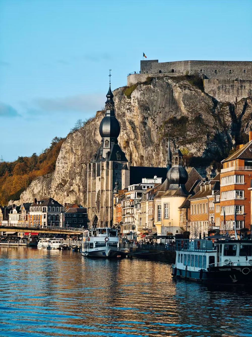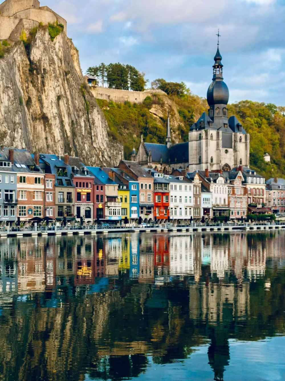 迪南聖母教堂、默茲河濱步道及薩克斯之家,沿河岸老城區漫步,欣賞彩色房屋與薩克斯雕塑,並到戴高樂大橋打卡午餐