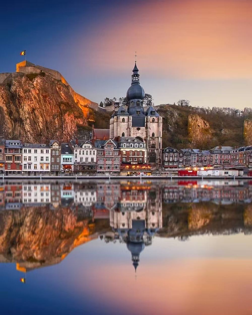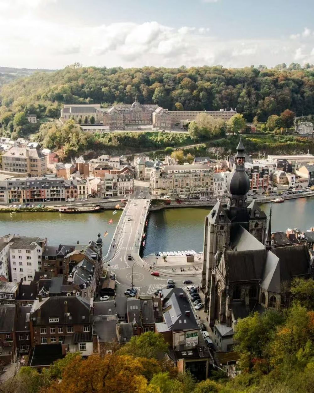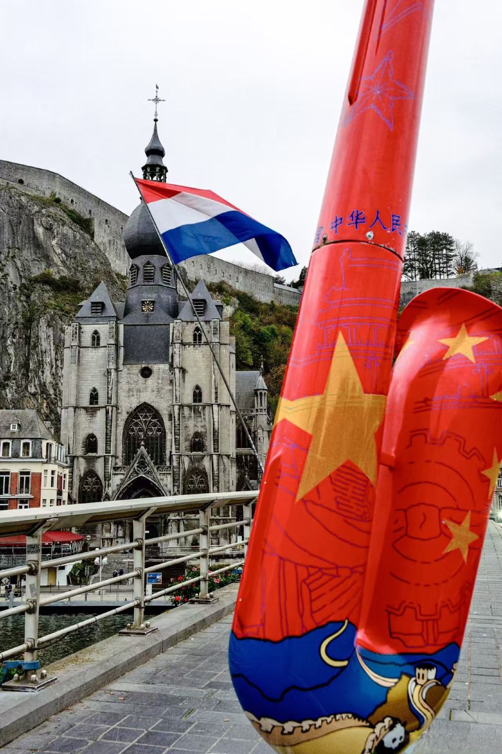 迪南聖母教堂、默茲河濱步道及薩克斯之家,沿河岸老城區漫步,欣賞彩色房屋與薩克斯雕塑,並到戴高樂大橋打卡午餐