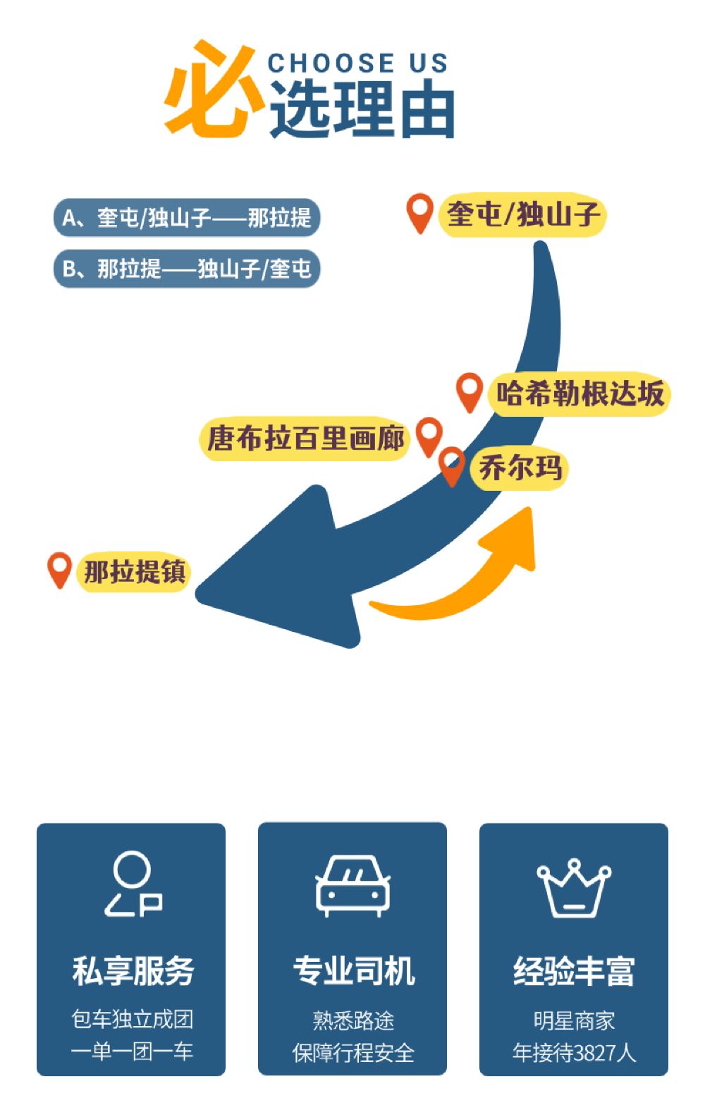 於指定地點接載08:00 新源 於指定地點接載 獨山子/奎屯市區內及火車站 免費接送