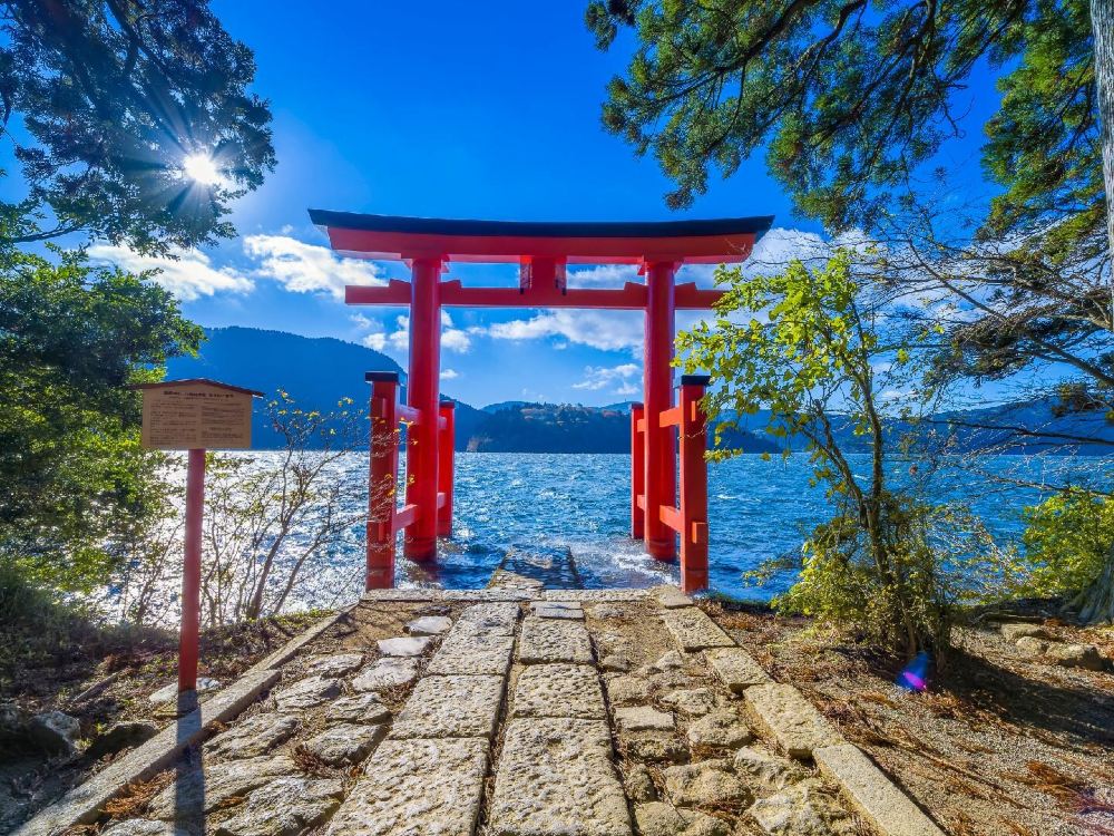 亮點: 箱根標誌性景觀 · 湖景與鳥居同框 · 日式氛圍感大片機位