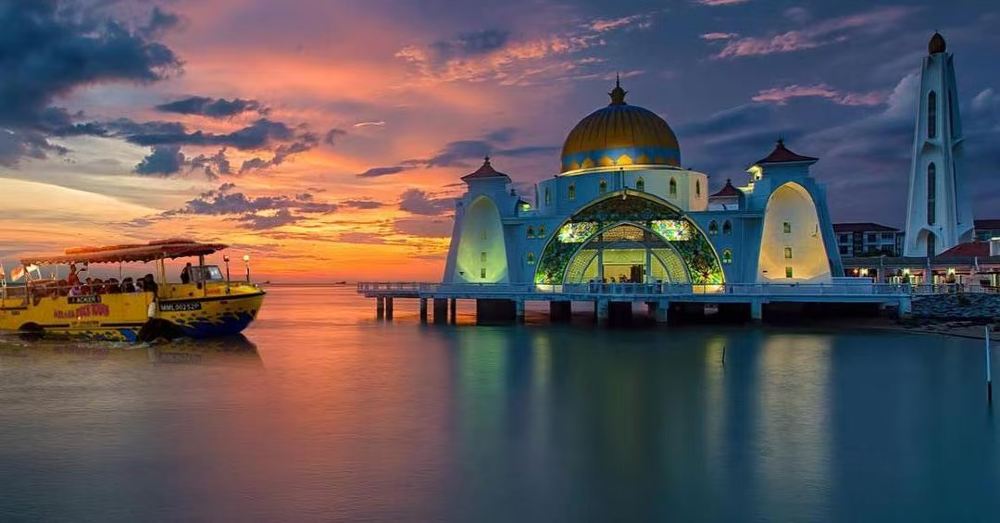 美麗水上聖殿。矗立馬六甲海峽,漲潮時宛如漂浮海面。打卡金色穹頂,在海上日落中捕捉震撼瞬間。在指定地點下車