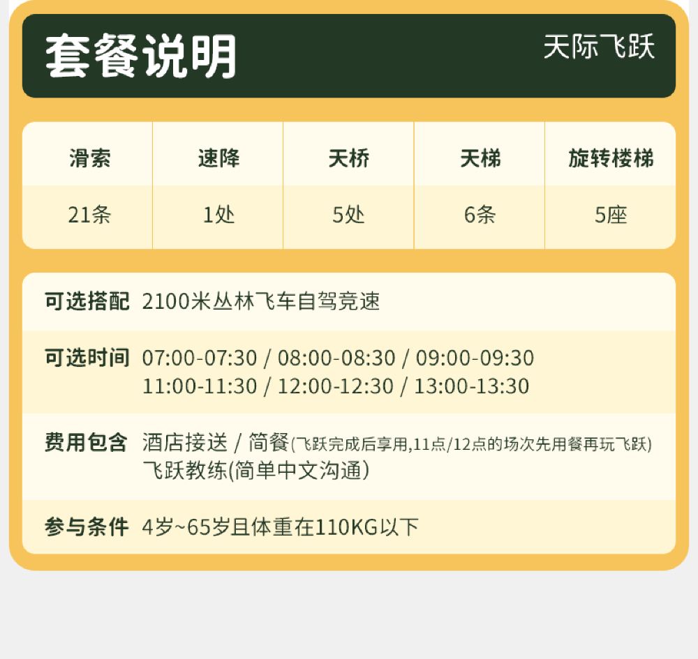 - 【刺激體驗】:多條叢林飛躍線路,各具特色,滿足不同刺激程度