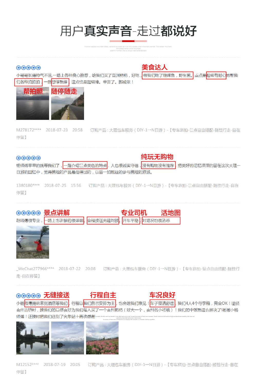 - 當地司機服務、隨車講解、幫忙拍照、活交通活地圖、美食達人、代訂門票演出、酒店推薦等性價比服務;