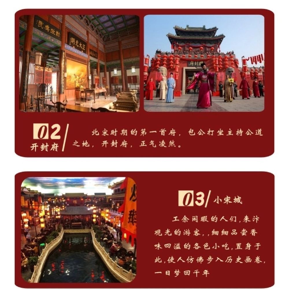 北宋京都官吏行政、司法的衙署,被譽為天下首府,有精彩的「包公宴請各國使臣」文藝表演。景點活動