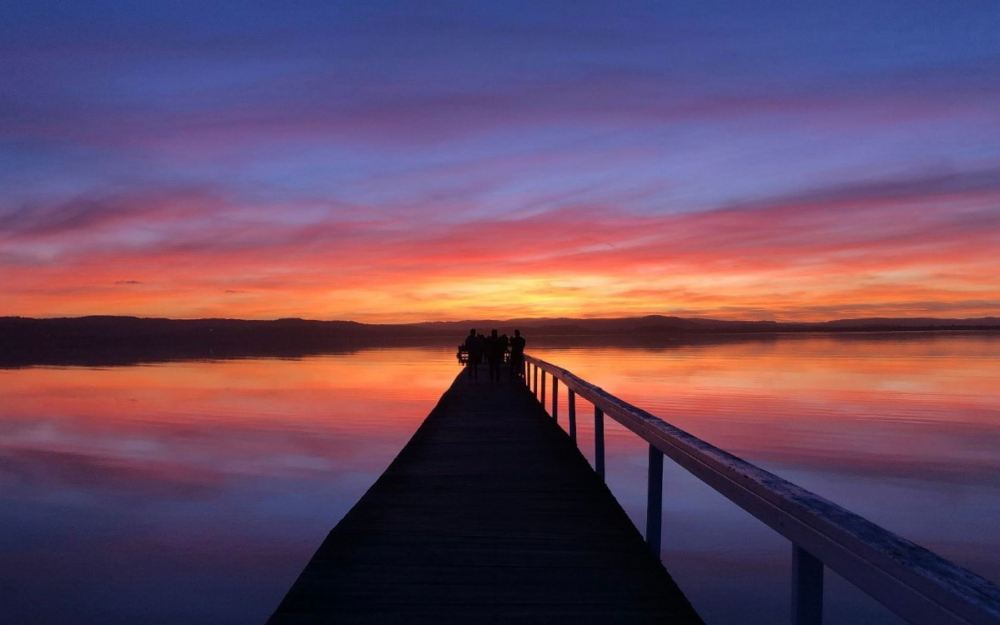 16:00 長堤(Long Jetty)攝影聖地湖中棧橋,網紅打卡熱點,300多公尺長的棧橋一直向湖中延伸,兩邊都是水天相接的平靜湖面,整個畫面靜謐悠遠。天水一色的景象,美得令人感動落淚!