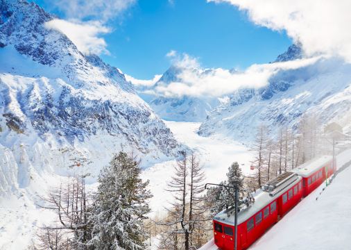 ▲ 如選擇包含【冰海小火車】的套餐,您將乘坐紅色小火車,前往海拔1913米的蒙特維爾車站,在那裡欣賞綿延7公里的冰川奇觀。