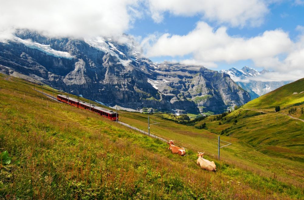 15:30 與導遊一起,乘坐齒軌火車下山,途經客來雪德、著名的無車度假小鎮溫根和勞特布倫嫩山谷。沿途可看到著名的艾格峰、僧侶峰和少女峰三峰並立的壯觀景象。