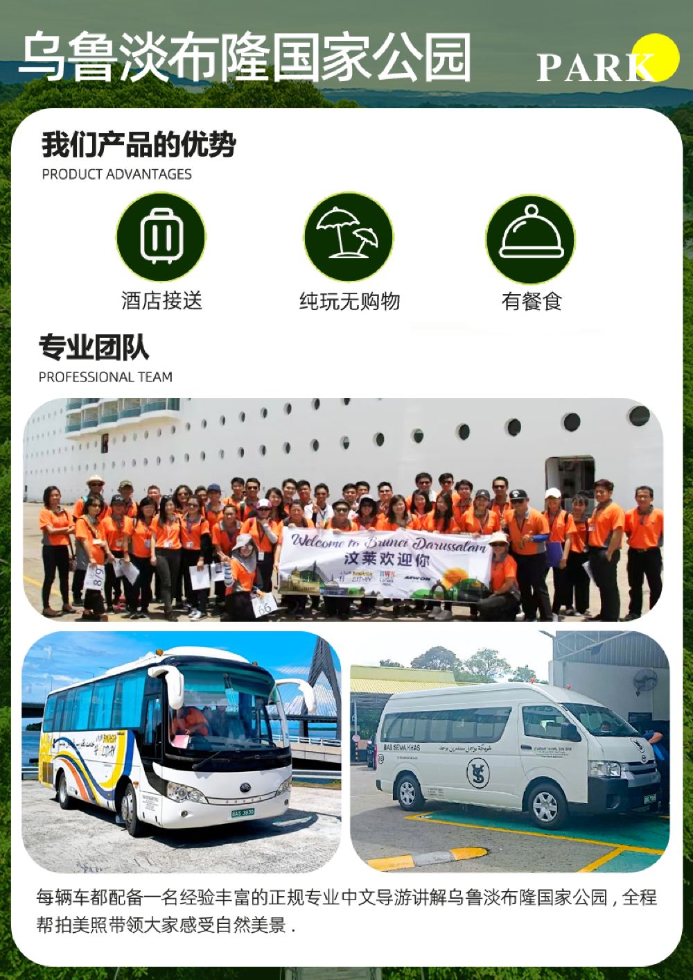 於指定地點接載08:00 斯里巴加灣市 於指定地點接載 僅限在斯里巴加灣市市中心(BSB City Centre)和加東區(Gadong)酒店入住的客人享有酒店接送服務。指定區域以外的接送服務將收取附加費用。任何額外的交通費用將在預訂確認後通過電子郵件通知。
