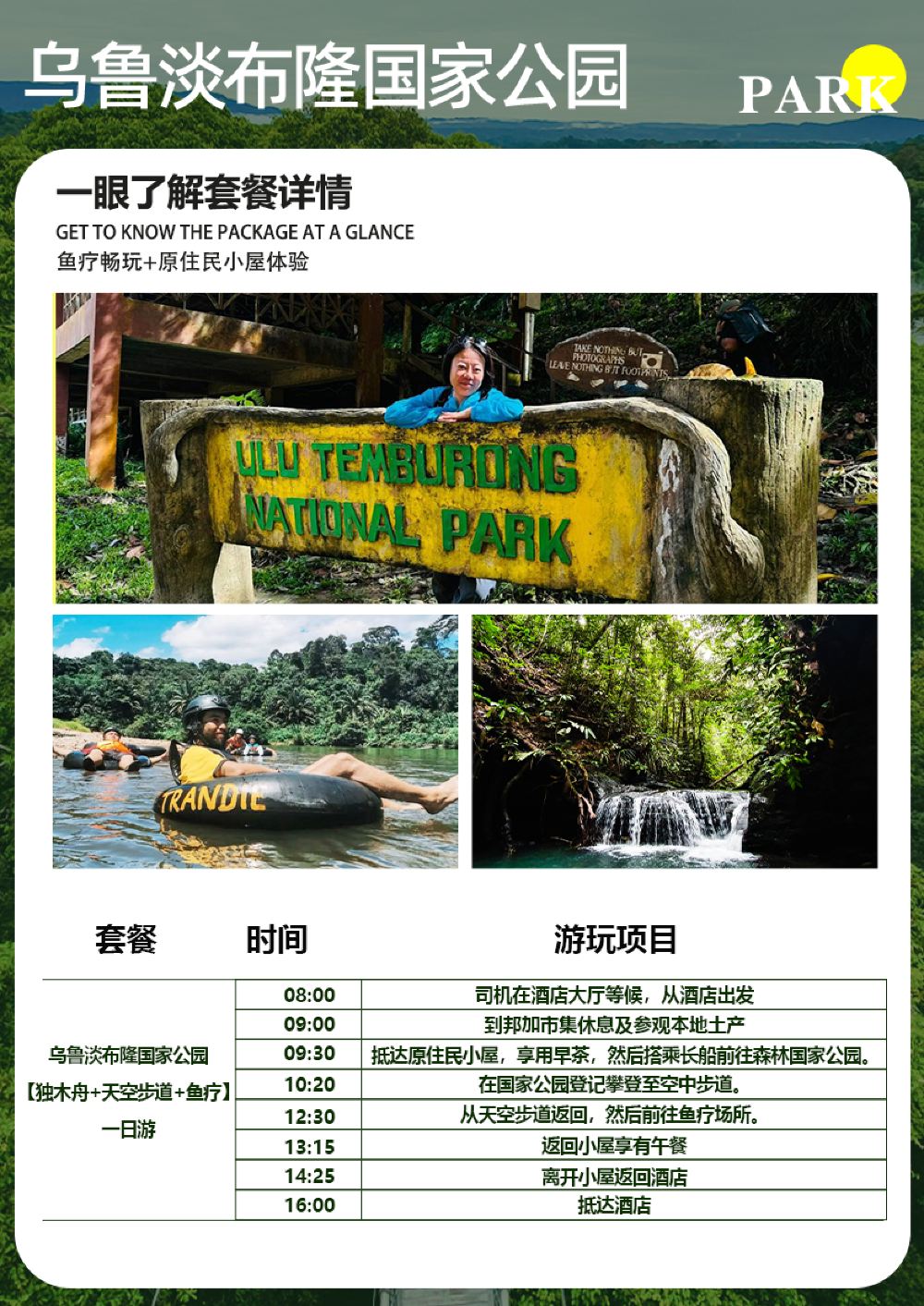 汶萊烏魯淡武廊國家公園一日遊【獨木舟+天空步道+魚療】