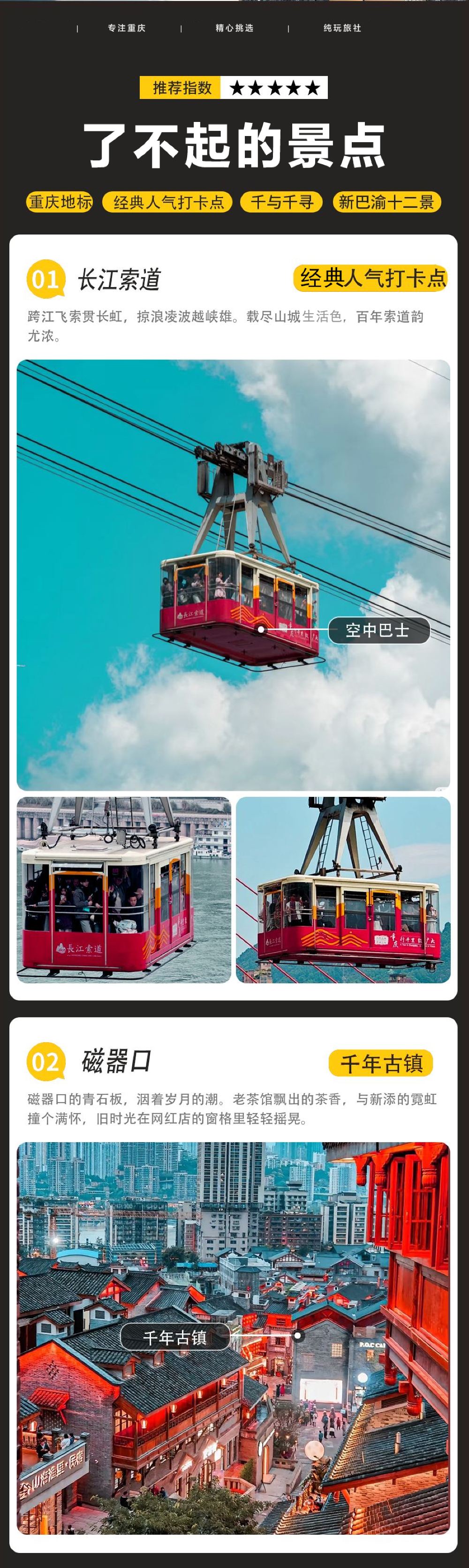 重慶長江索道+磁器口+輕軌穿樓+洪崖洞民俗風貌區一日遊|全包|無套路