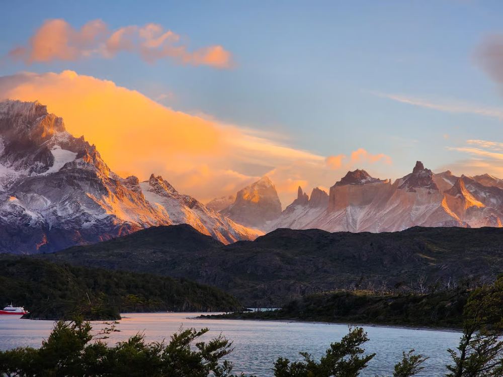 欣賞到公園內「帕伊內塔」(Torres del Paine)三座並肩聳立的塔形山峰的壯麗景觀。午餐