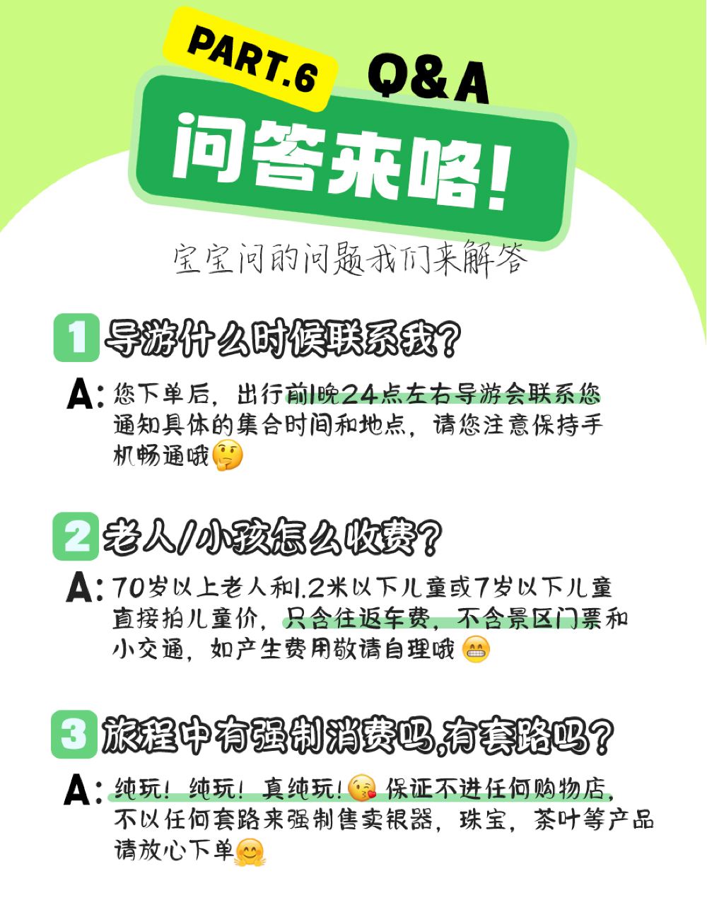 ①集合地點:景洪潑水廣場08:10(潑水廣場警務室旁)、景洪告莊西雙08:30(如對集合地點不清晰,可直接聯繫客戶服務支援或帶隊導遊,無需進酒店諮詢),2大集合地點可選,方便易達。 ②旅遊大巴有專用行李艙,可放置隨身攜帶行李箱,貴重物品請自行保管。 【春節,國慶節,潑水節等重大節日發車和返程時間、地點可能會有變動,具體集合時間和車牌以工作人員通知為準,感謝您的行程與配合!在集合地點集合