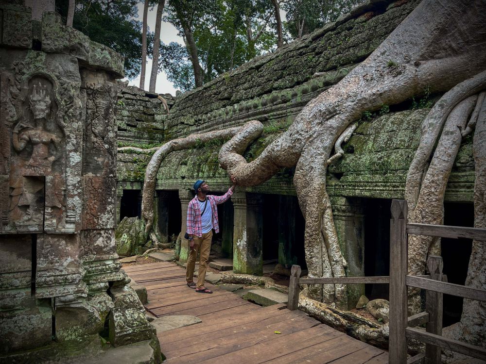 ▲ 捕捉聯合國教科文組織世界遺產地中,傳奇樹根蔓延於華麗寺廟建築的景象