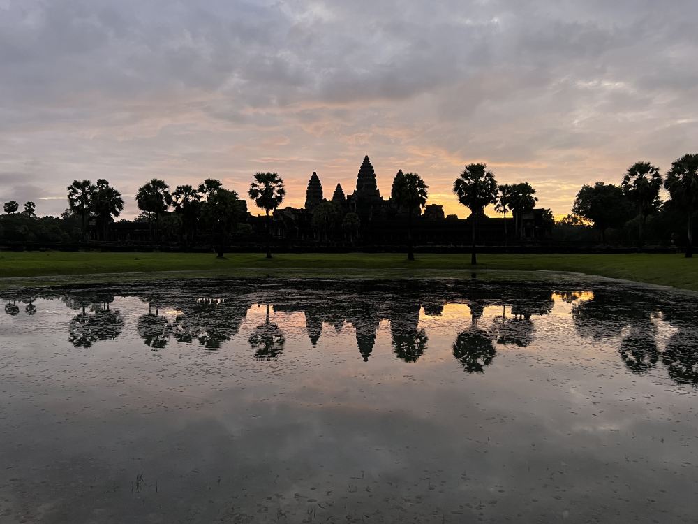 ▲ 吳哥窟標誌性的輪廓完美倒映在平靜的水面上,呈現出神奇的日出時刻