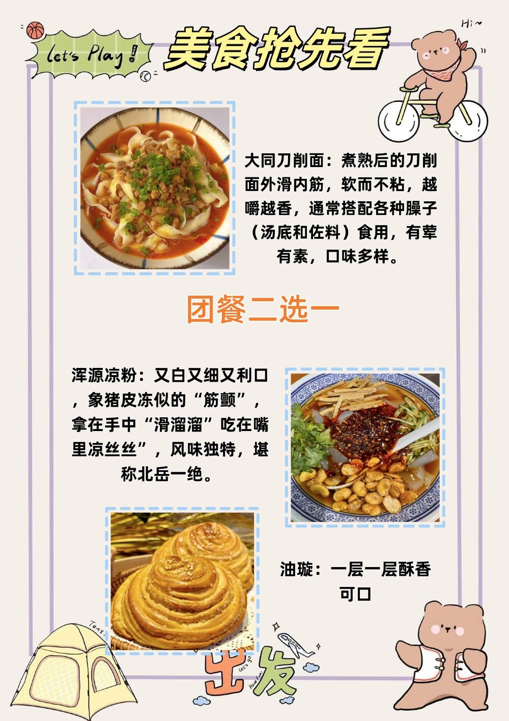 (刀削麵雞蛋/涼粉餅子),含門票的套餐午餐是旅行社贈送的,每人一份,如有南北口味差異不吃不退哦。交通