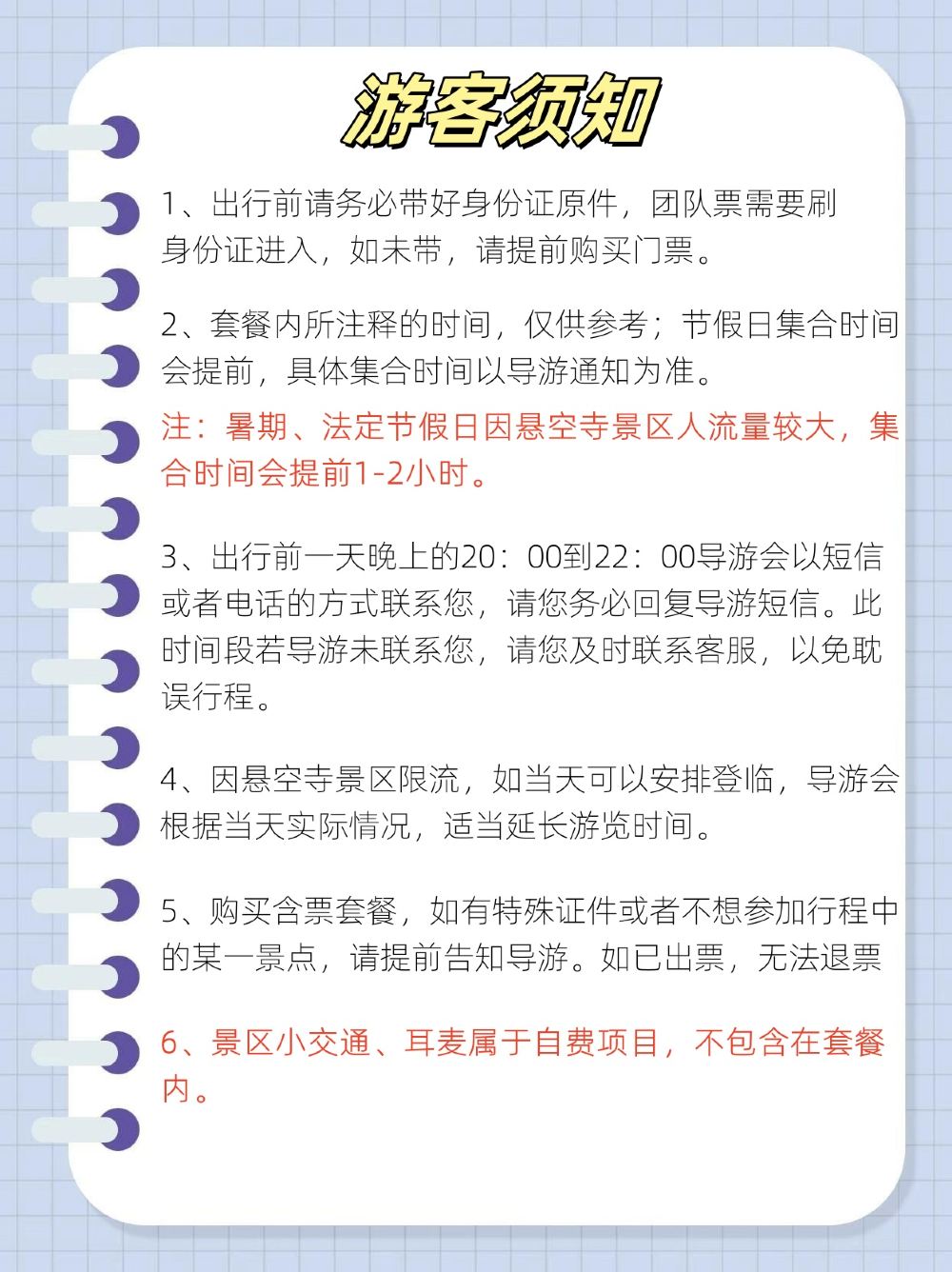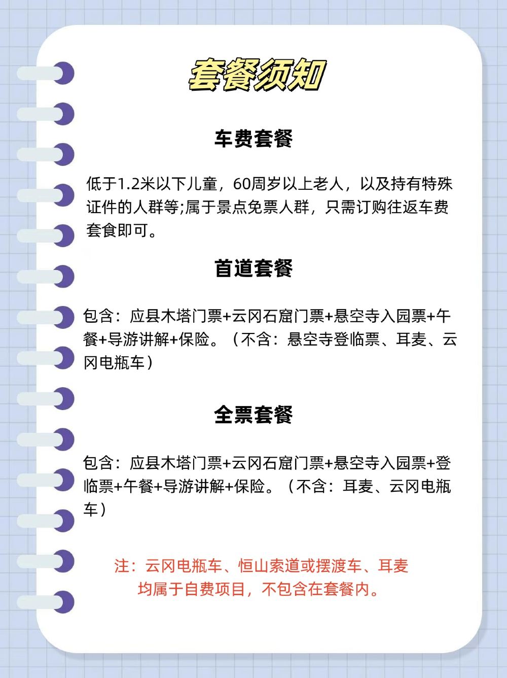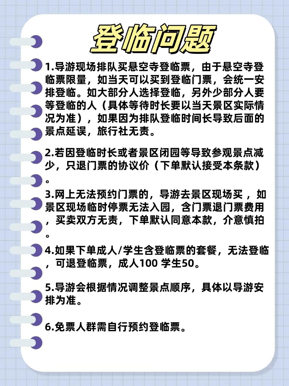 - 【講解服務】導遊全程陪同講解,擁有多年人文講解帶團經驗。登臨懸空寺深度遊玩,俯瞰千年歷史文化建築。