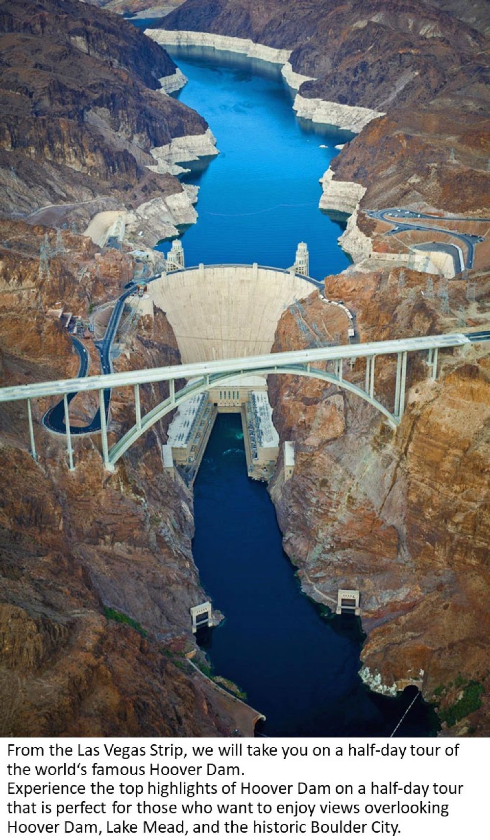 欣賞藝術雕塑、歷史建築,並在博爾德水壩酒店內參觀胡佛水壩博物館。在指定地點下車