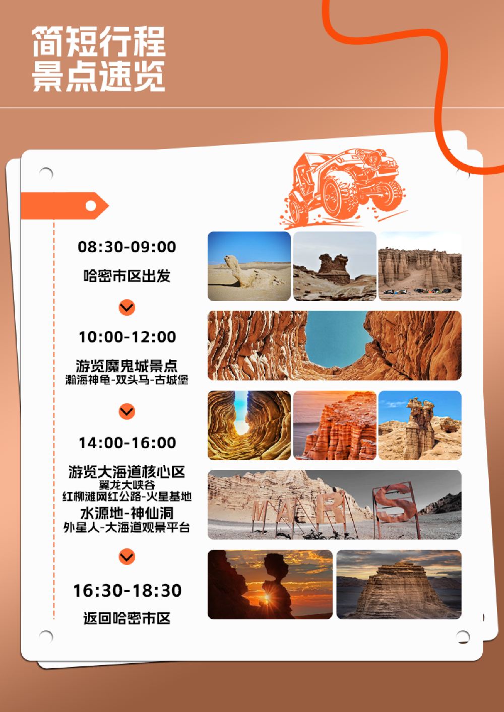 乘車 哈密-魔鬼城行程約100公里車型參考:精選四驅越野:5座可乘坐4人