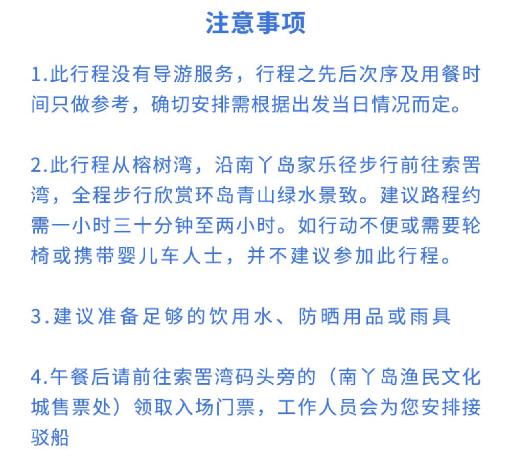 午飯後自行在南丫島遊玩,可在索罟灣碼頭旁【漁民文化村】售票處免費領取入場門票前往漁民文化村遊玩景點活動