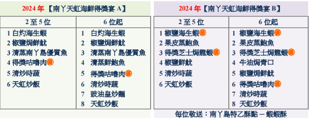 2024年起菜單更新如下: