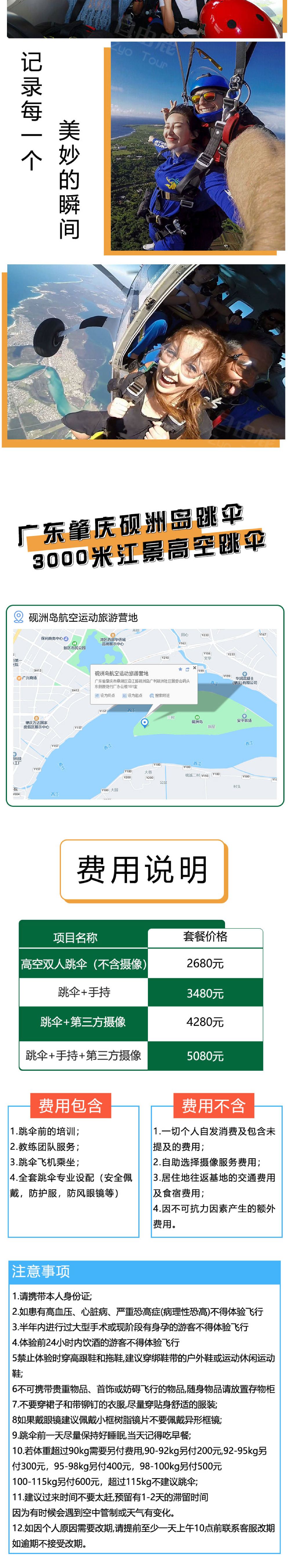廣東肇慶硯洲島跳傘廣州深圳惠州雙人高空跳傘【4000米自由落體+專業高清視頻拍攝+視頻剪輯】